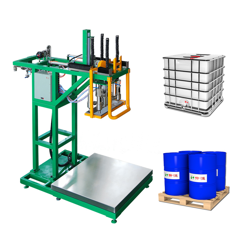 液體化工灌裝機■ 應用范圍:設備適用于化工、石化、食品原料、醫藥等行業。基本參數:■ 使用電源:AC220V 50/60HZ 0.2KW 使用氣源:0.5~0.7 Mpa■ 灌 裝 量:100~1200kg 分度值:0.1kg■ 灌裝能力:200L 40~48桶/H、IBC噸桶 6~8桶/H■ 灌裝精度:≤ 0.1% FS■ 灌槍材質:SUS304/SUS316/PTFE(可選)■ 防