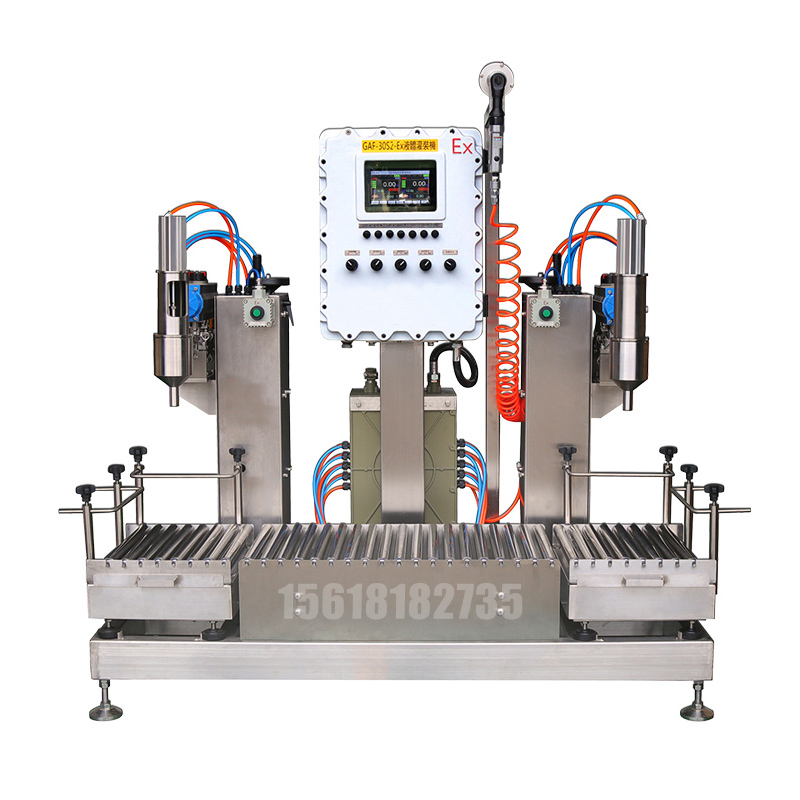 液體雙頭灌裝機(jī)GAF-30S2-Ex液體雙頭灌裝機(jī)系統(tǒng)采用可編程PLC控制、全中文引導(dǎo)操作,性能可靠;灌槍整體工藝制作,杜絕滴漏、防飛濺;快拆接頭,拆洗方便;穩(wěn)定性好、減少損耗、節(jié)約成本,提高作業(yè)效率,減少人工操作壓力。應(yīng)用范圍:適用于化工、食品、醫(yī)藥等原料定量之灌裝。基本參數(shù):1、電源:AC220V 50/60HZ 0.2KW 氣源:0.5~0.7 Mpa2、灌裝量:10~30kg